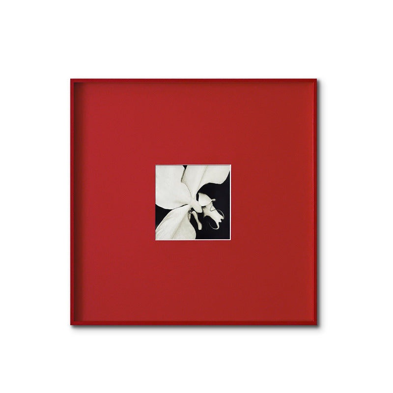 Orchid Bloom FRAMED | Minimalist Nature Canvas Print | Red Aluminium Frame Wall Art | Contemporary Floral Décor | Living Room & Study Art