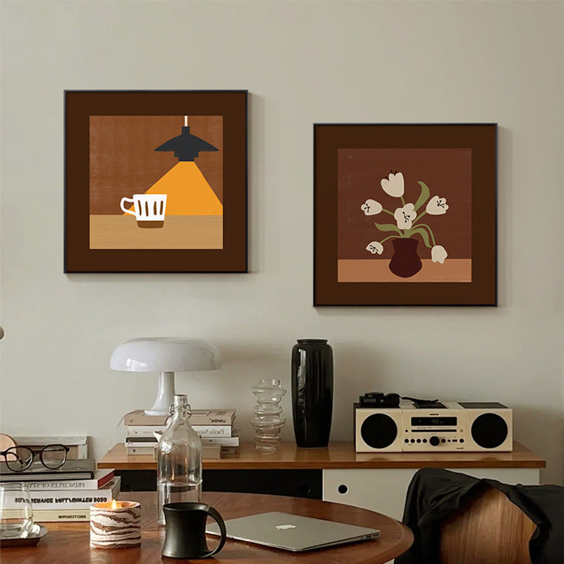Bring soft elegance and timeless charm to your space with this minimalist retro artwork, featuring a bouquet of white tulips arranged in a deep brown vase. The earthy background and warm muted tones evoke a nostalgic, mid-century feel, making it a serene and stylish accent for any interior. Perfect for lovers of floral art and retro-inspired décor.